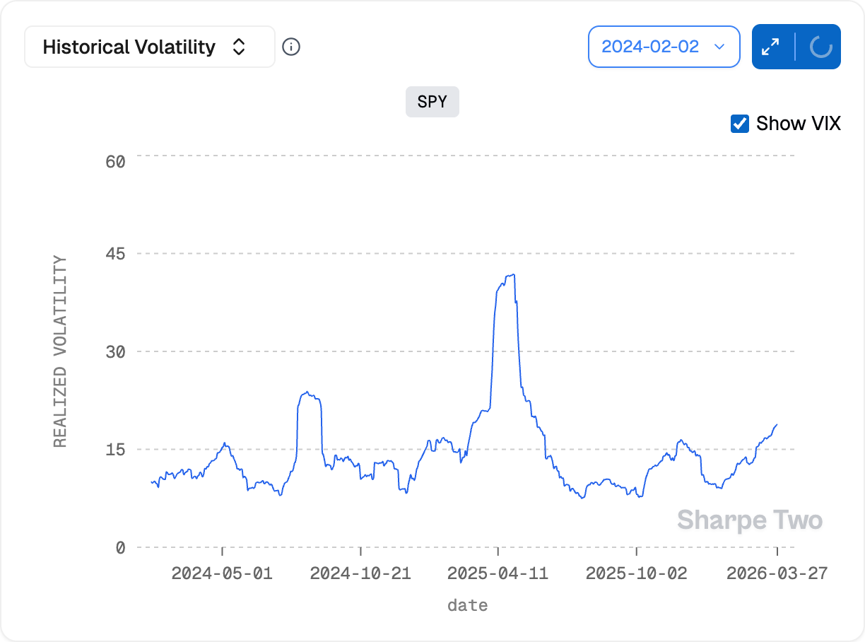 Under these same market assumptions, the probability of seeing a move of 5% or more is now around 16% over the next month under Gaussian assumptions, and closer to 35% when you account for the fat tails that equity markets actually exhibit.