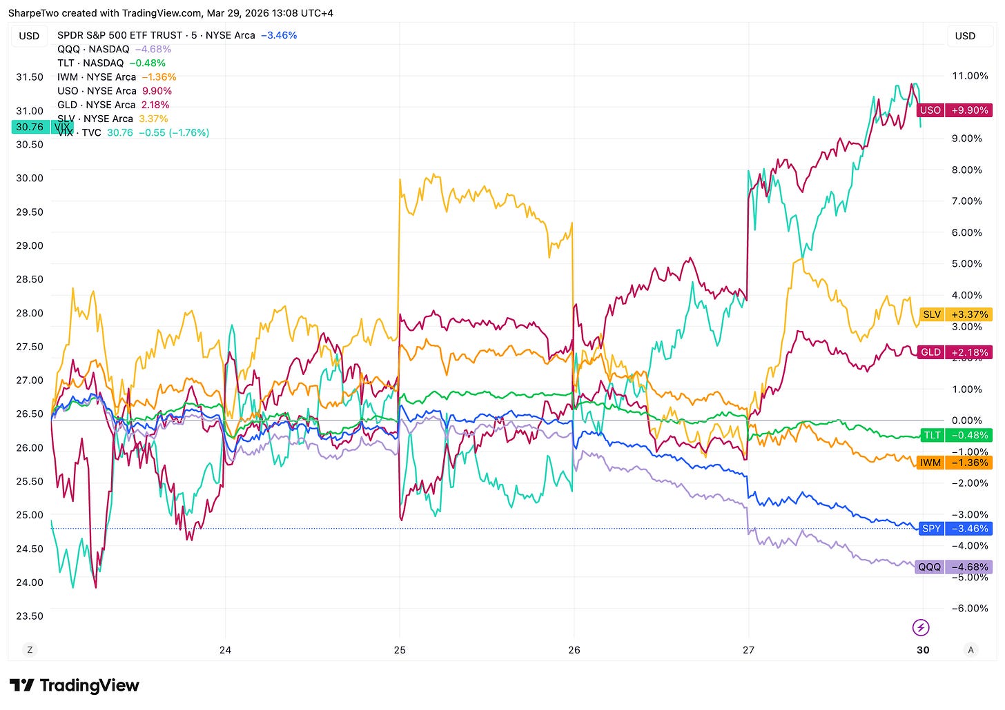 It was deemed to happen after three weeks getting really comfortable above 25 with no evident sign of immediate resolution of the pressing geopolitical matter. We heard on Monday that President Trump was apparently discussing with the Iranians, that the discussions were productive and led him to delay his attacks on key energy infrastructure of the country, and in general the US strikes. In return, we heard from the Iranians that President Trump must be discussing with himself as there was no formal contact between anyone, and that for now the Strait of Hormuz would remain closed and they would continue to defend themselves against the Israeli strikes, which despite President Trump's announcement on Monday, insisted they would continue.